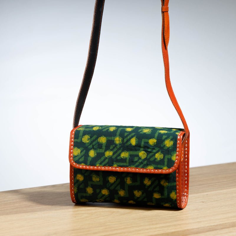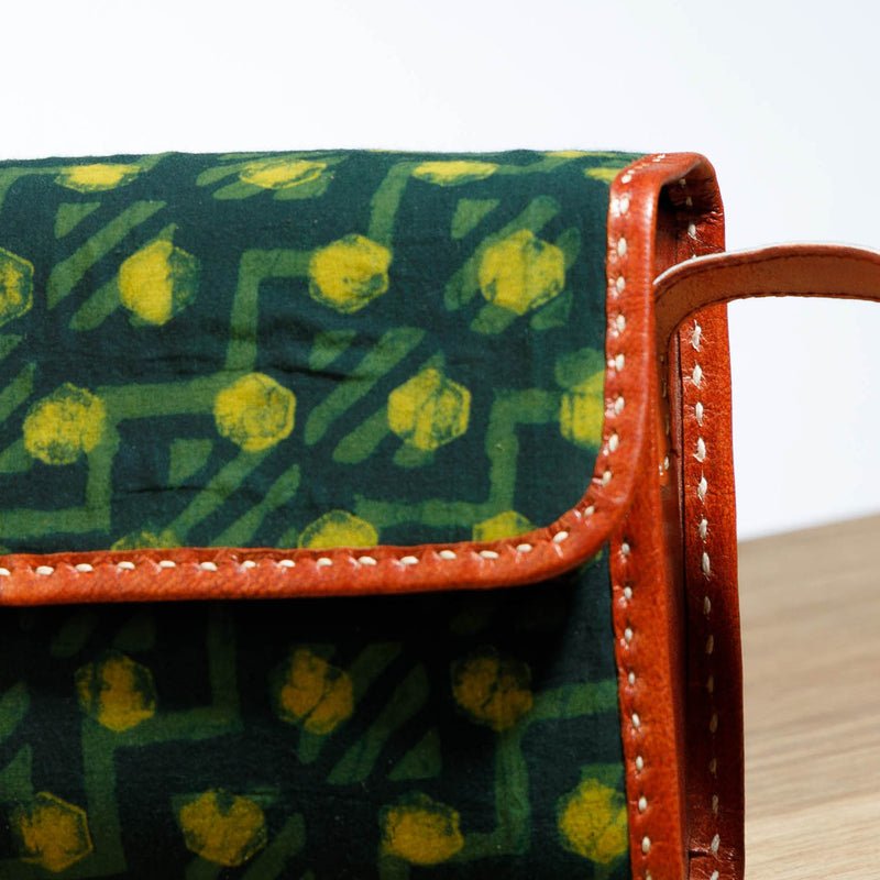 Ajrakh Block Print Cotton & Leather Handcrafted Sling Bag