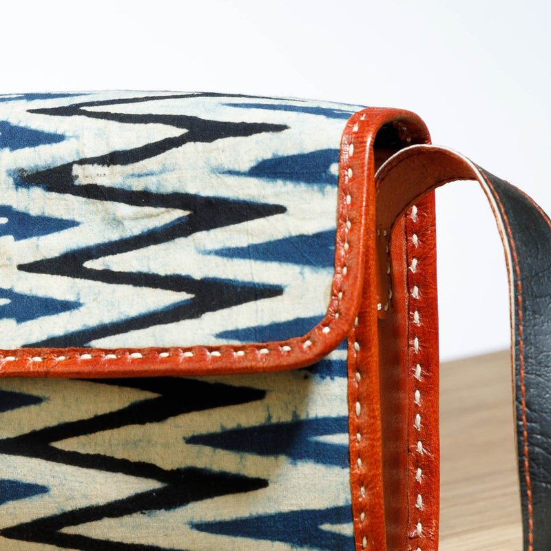 Ajrakh Block Print Cotton & Leather Handcrafted Sling Bag