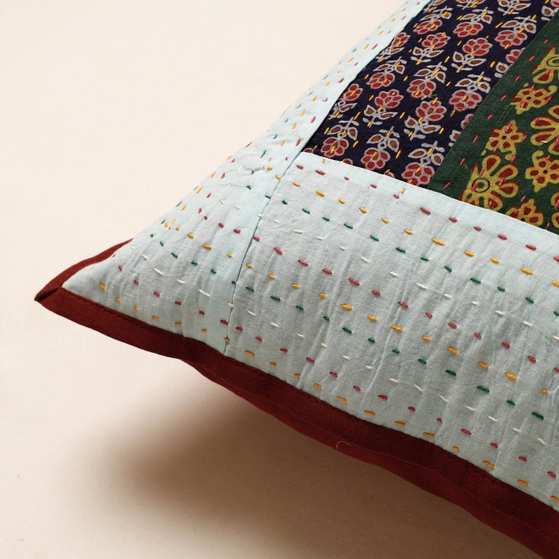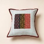 Ajrakh Tagai Patchwork Cotton Cushion Cover (16 x 16 in)