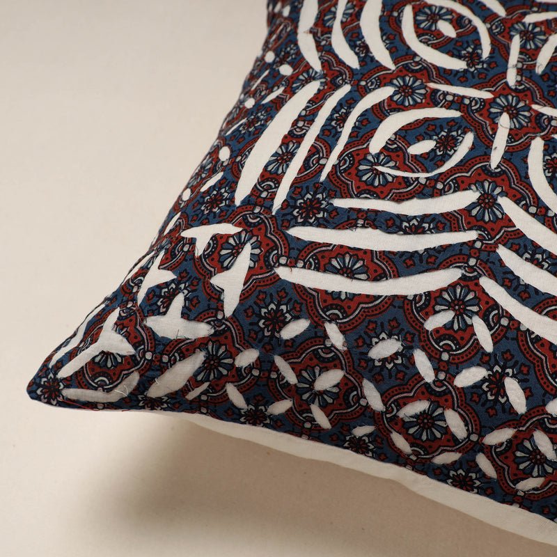 Sanganeri Block Printed Tagai Work Quilted Cotton Cushion Cover (16 x 16 in)