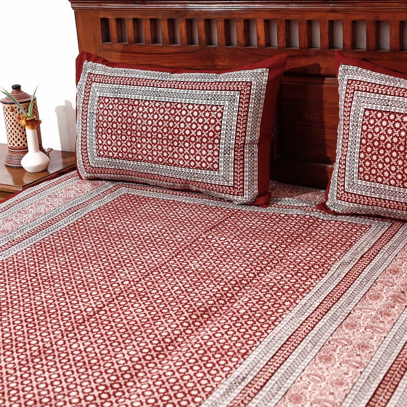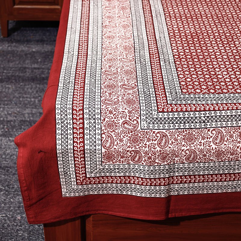 Fine quality bagh hand block printed pure cotton bed cover made using natural dyes through traditional process by Umar Faruk Khatri practiced in Bagh, the Dhar district of Madhya Pradesh. Bagh prints have unique and traditional hand block printing, printed using vegetable dyes. Its name is derived from a small tribal village Bagh in the Dhar district of Madhya Pradesh. Product and material testing reports available on request.