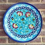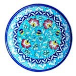 This plate is handmade and hand-painted using one of the most popular and geographically indexed pottery technique from India – Blue Art Pottery. It is made by an awarded Indian artisan. The plate is completely handglazed and hand-painted using acrylic colors. Various shapes, sizes and designs are possible for a small batch production of 100 pieces. Existing designs are available for a minimum quantity of 24 pieces.