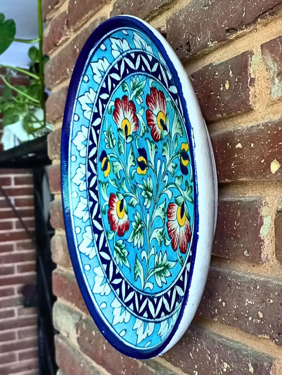 Blue Art Pottery Ceramic Hanging Plate 10 Inch