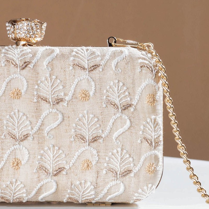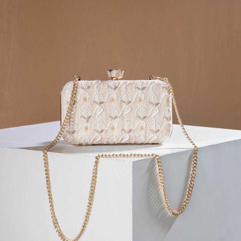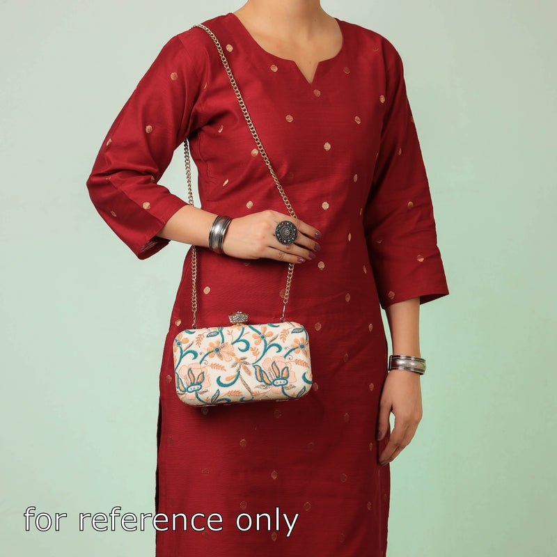 Home All Categories Fashion Accessory Sling Bags Chikankari Zari Hand Embroidered Tussar Silk Clutch/Sling Bag
