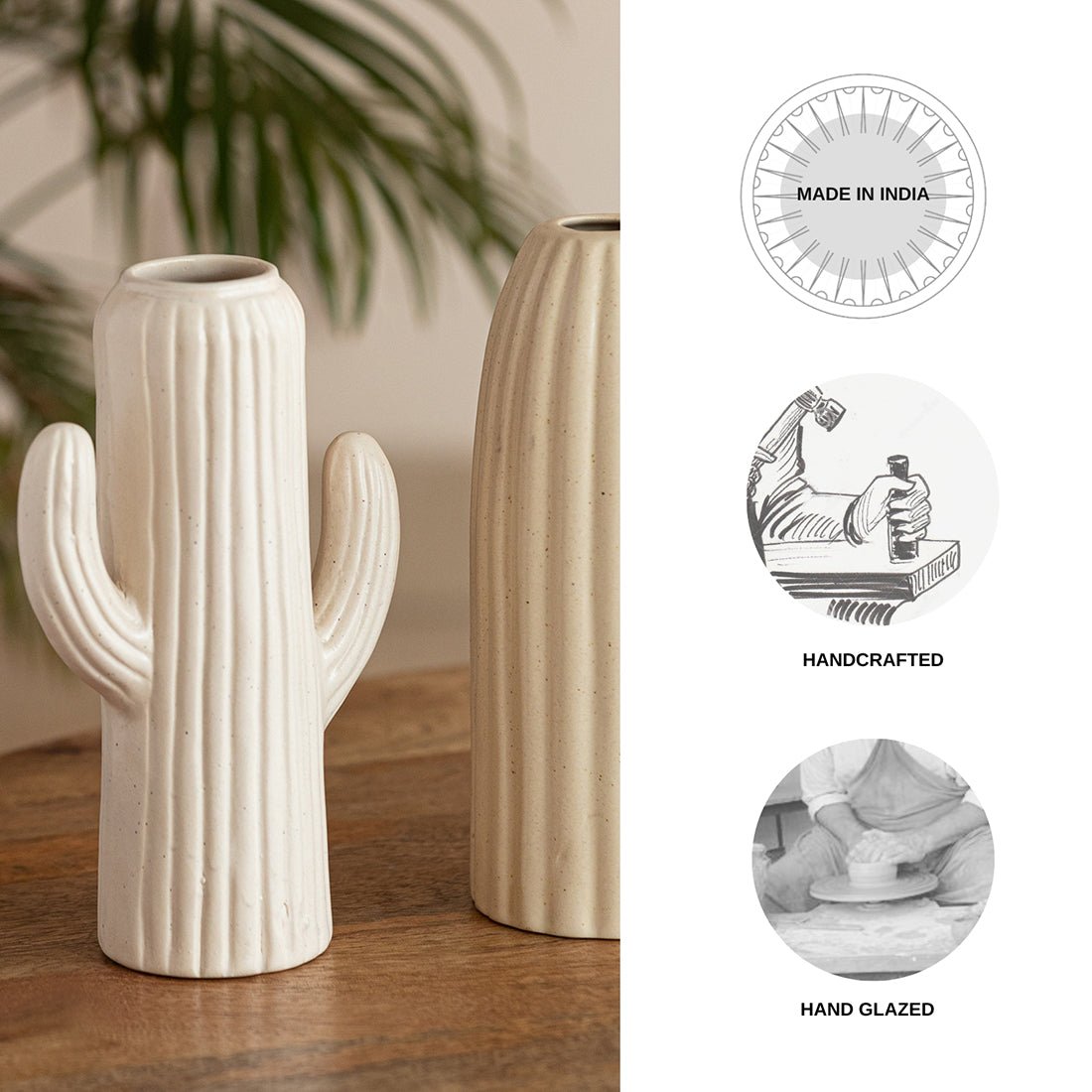 The Vases vases are made from high quality clay. They are a mix of art techniques ranging from hand painted to solid glaze, terracota to studio pottery. Moreover, shapes range from standard conical, flat bed, geometrical, asymetric to animal forms. We can make customised planters, pots, vases in various shapes, size, colors using above mentioned art and more art forms. A small batch production of 24 units is possible for any of the ready designs and 100 units for a customised one. Quality testing reports and material testing certificates are provided on request.