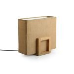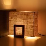 The lamp is made from a high quality hard wood. Top top is made of Jute, Linen, Cmabirc cotton wrapped over Polyvinyl. Bulb holder Type is B22. Comes with 2 pin plug. Comes with an On/Off switch. Wire Length is 1.6 meters. Various shapes, sizes and designs are possible for a small batch production of 100 pieces. Existing designs are available for a minimum quantity of 24 pieces.