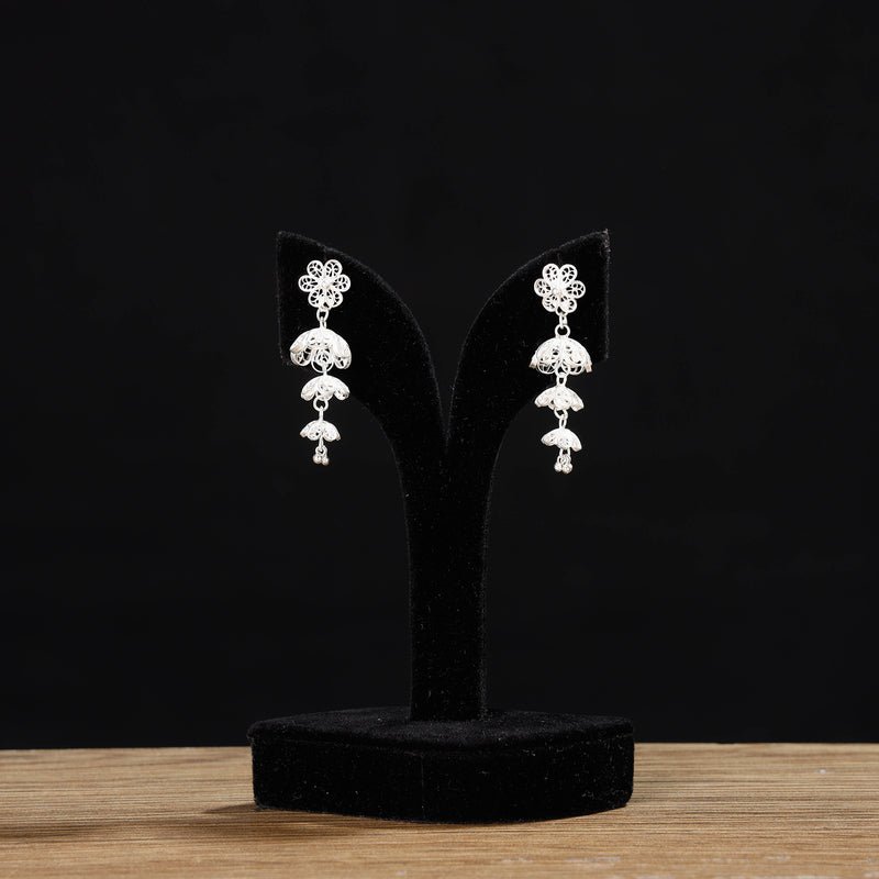 Elevate your accessory collection with these exquisite hand-crafted filigree sterling silver jhumki earrings. Meticulously created by skilled artisans using traditional techniques, this stunning piece showcases a captivating design and impeccable finish. Made from 92.5% sterling silver. Featuring an eye-catching design and excellent finish, these filigree silver jhumki earrings are a must-have in your accessory collection.