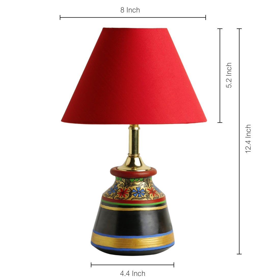 Hand-Painted Flat Round Shaped Table Lamp In Terracotta