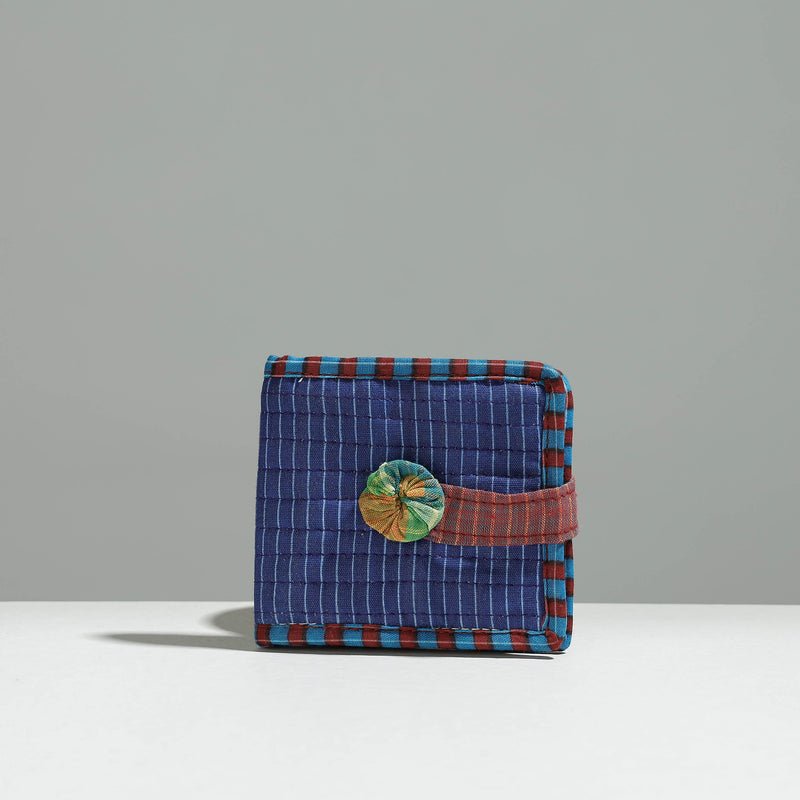 This handcrafted Gamcha fabric cotton wallet is handcrafted by Rangila Dhaga. It has one simple pocket, six card slots, one zipper pocket inside. Unique contemporary style.