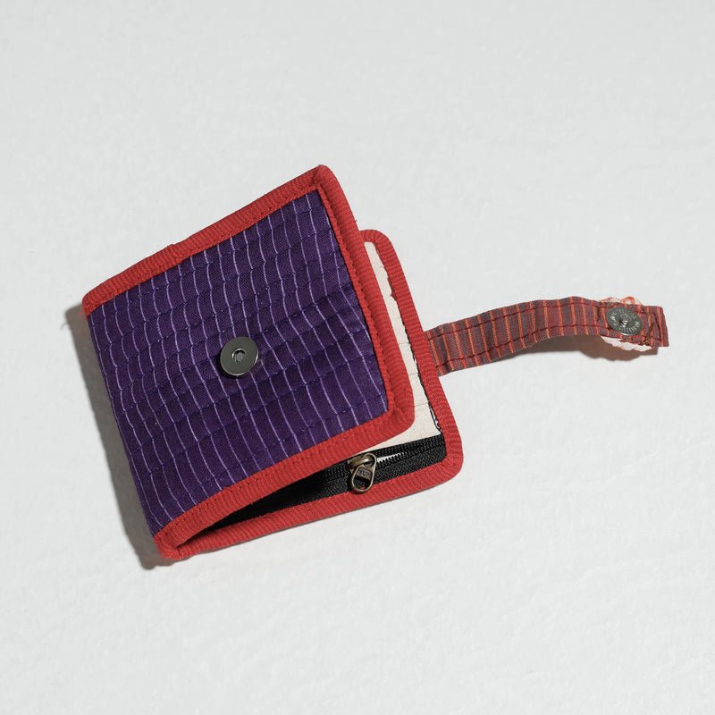 This handcrafted Gamcha fabric cotton wallet is handcrafted by Rangila Dhaga. It has one simple pocket, six card slots, one zipper pocket inside. Unique contemporary style.