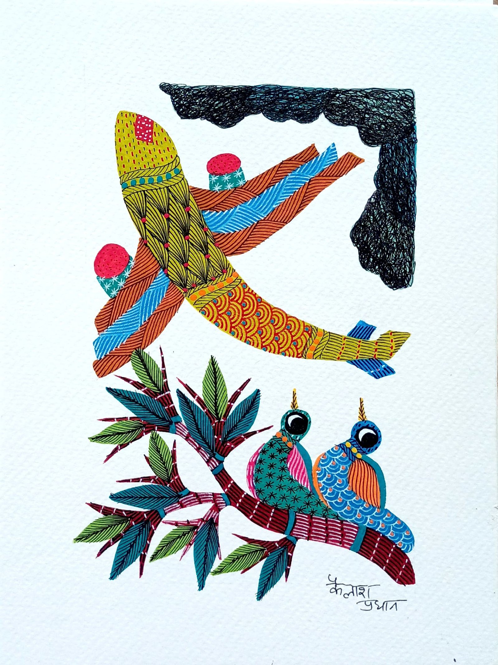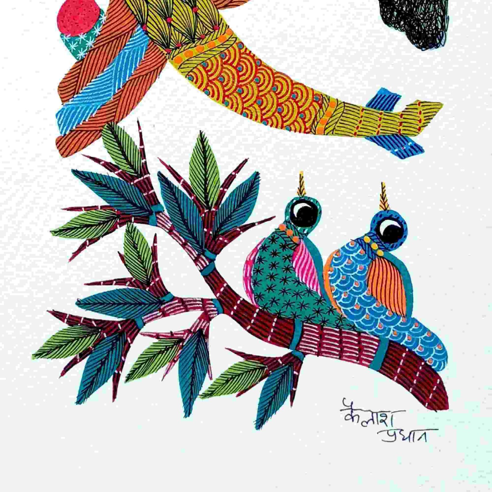 Gond Tribal Art Painting on Paper by Acrylic Colors