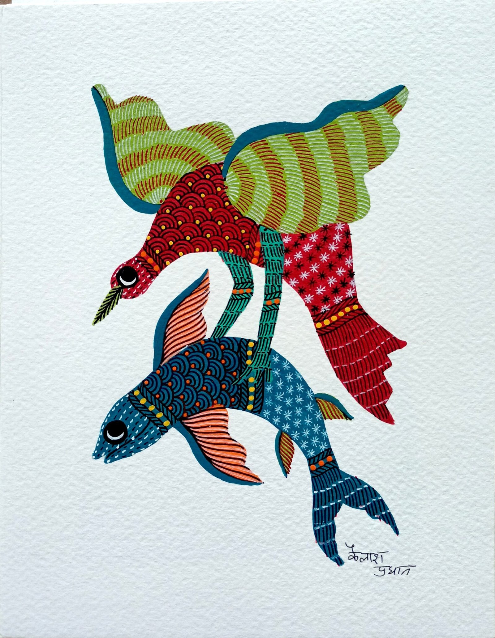 Gond Tribal Art Painting on Paper by Acrylic Colors