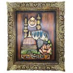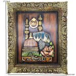 The wall painting is a unique artwork by an awarded Indian artisan. The frame is a solid wooden frame on which the 3D fibre figurine is mounted. The complete painting is hand painted using metallic and acrylic colors. A number of religious and cultural motifs are possible for a small batch production of 24 pcs.