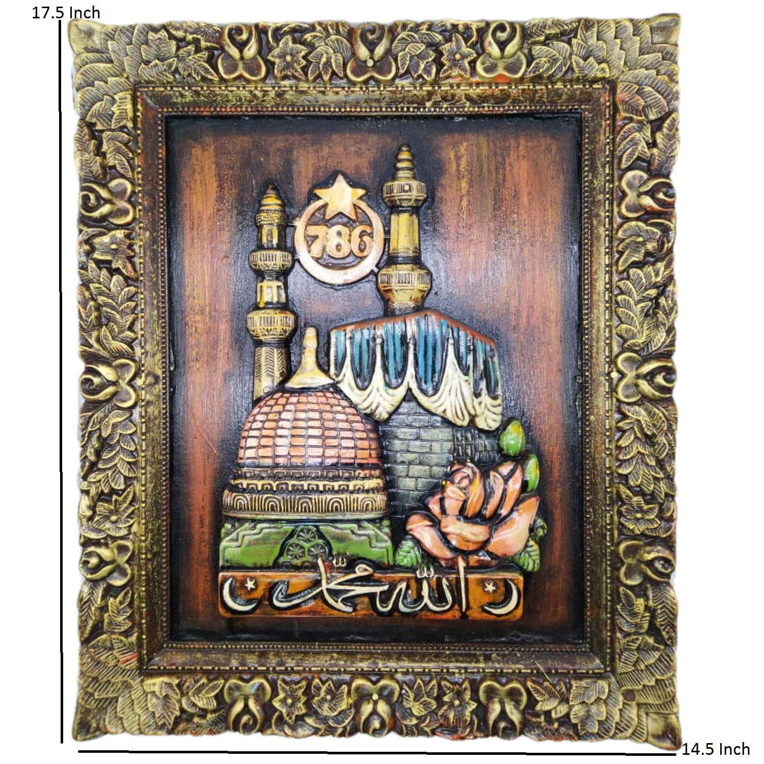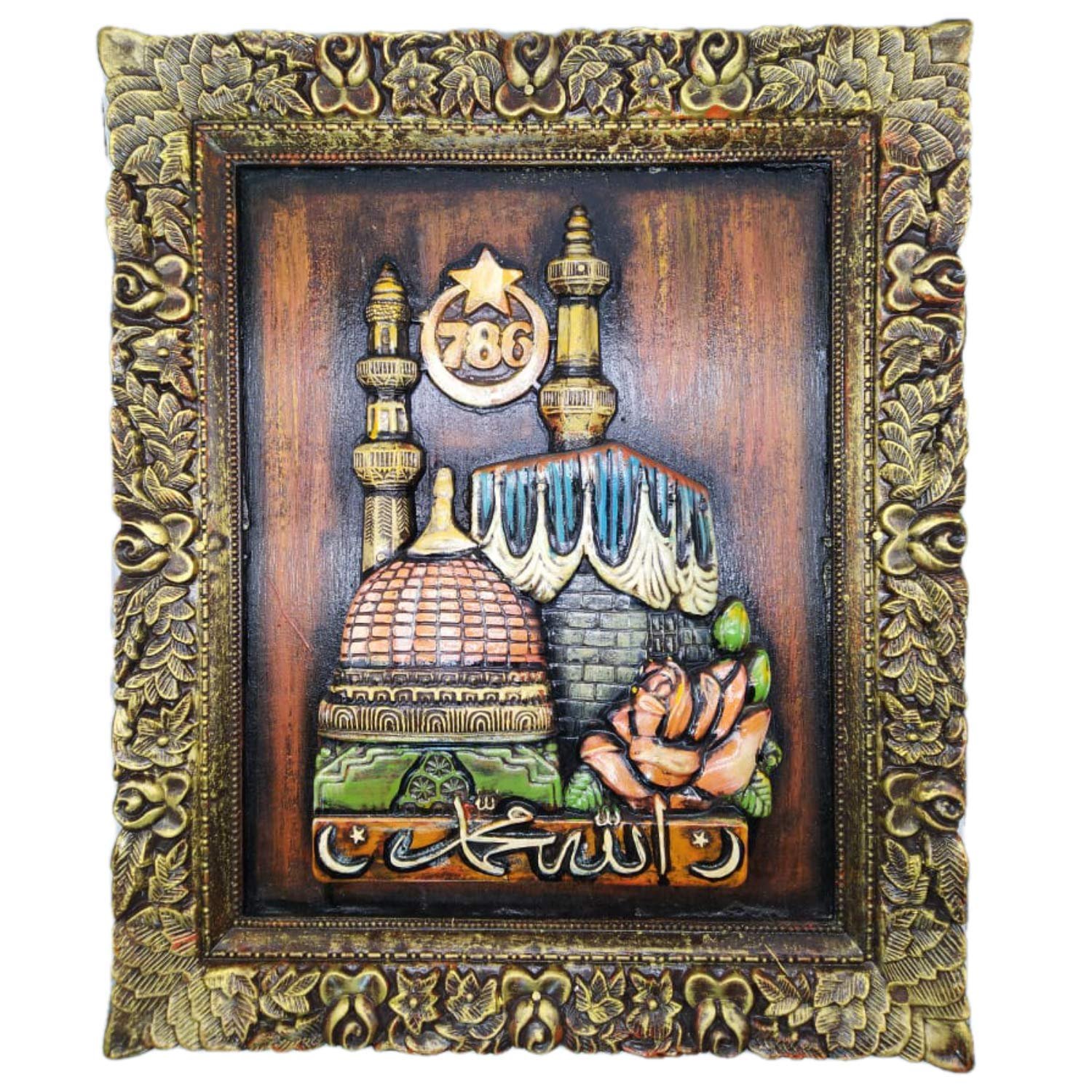 Hand-painted Allah 786 Bismillah 3D Wall Hanging Wood Framed
