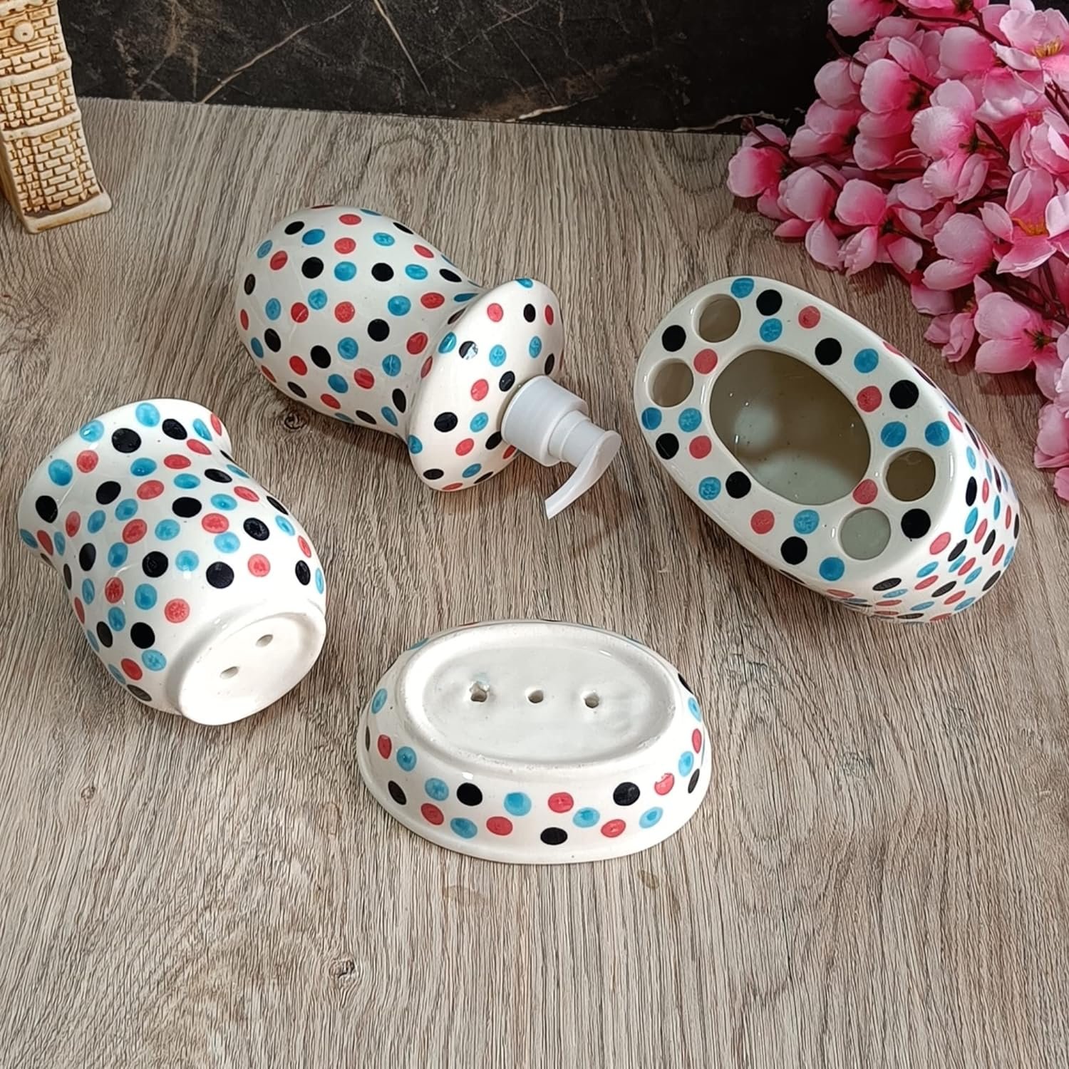 Hand-painted Ceramic Bath Accessories Set of 4