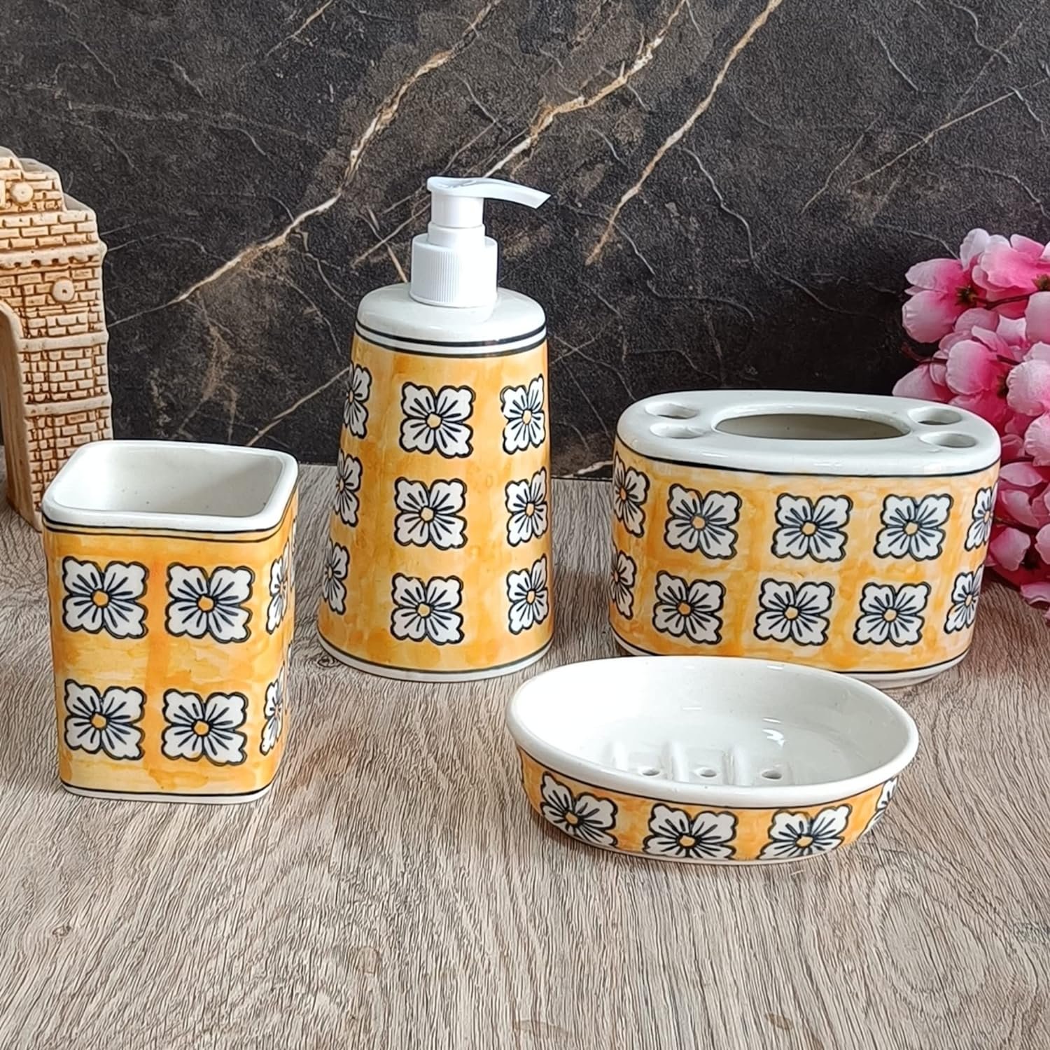 Hand-painted Ceramic Bath Accessories Set of 4