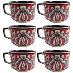 The mugs and cups are made from a high quality clay. Making them microwave safe. They are hand painted by expert artisans from Khurja. The handles are strong and offer a good grip. Hand wash recommended. We can customise the size, shape, design and color for a small batch production of 100 units. Quality testing reports and material testing certificates are provided on request.