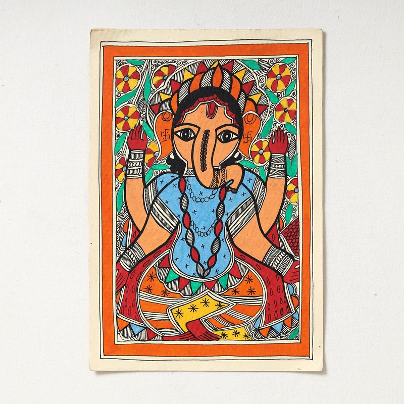 Hand-painted Madhubani Painting by Hira Devi  (7.5 x 11)