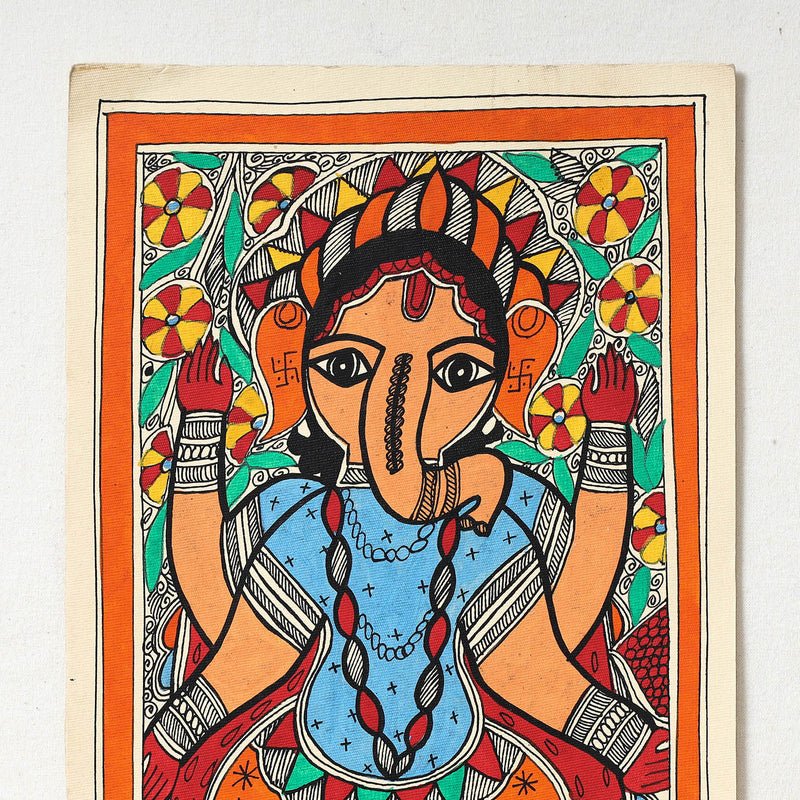 Hand-painted Madhubani Painting by Hira Devi (7.5 x 11)