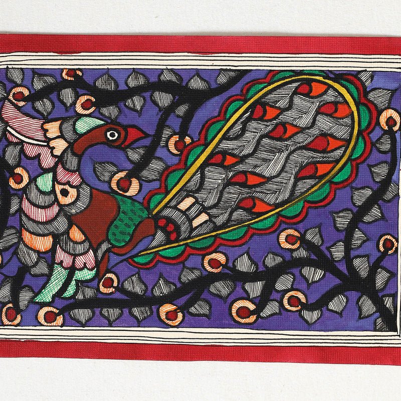 Hand-painted Madhubani Painting by Hira Devi (30 x 11)