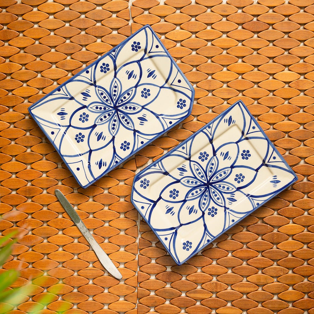 The ceramic serving trays and platters are made from a high quality clay. Making them microwave safe. They are hand painted. The handles are strong and offer a good grip. Hand wash recommended. We can customise the size, shape, design and color for a small batch production of 100 units. Quality testing reports and material testing certificates are provided on request.
