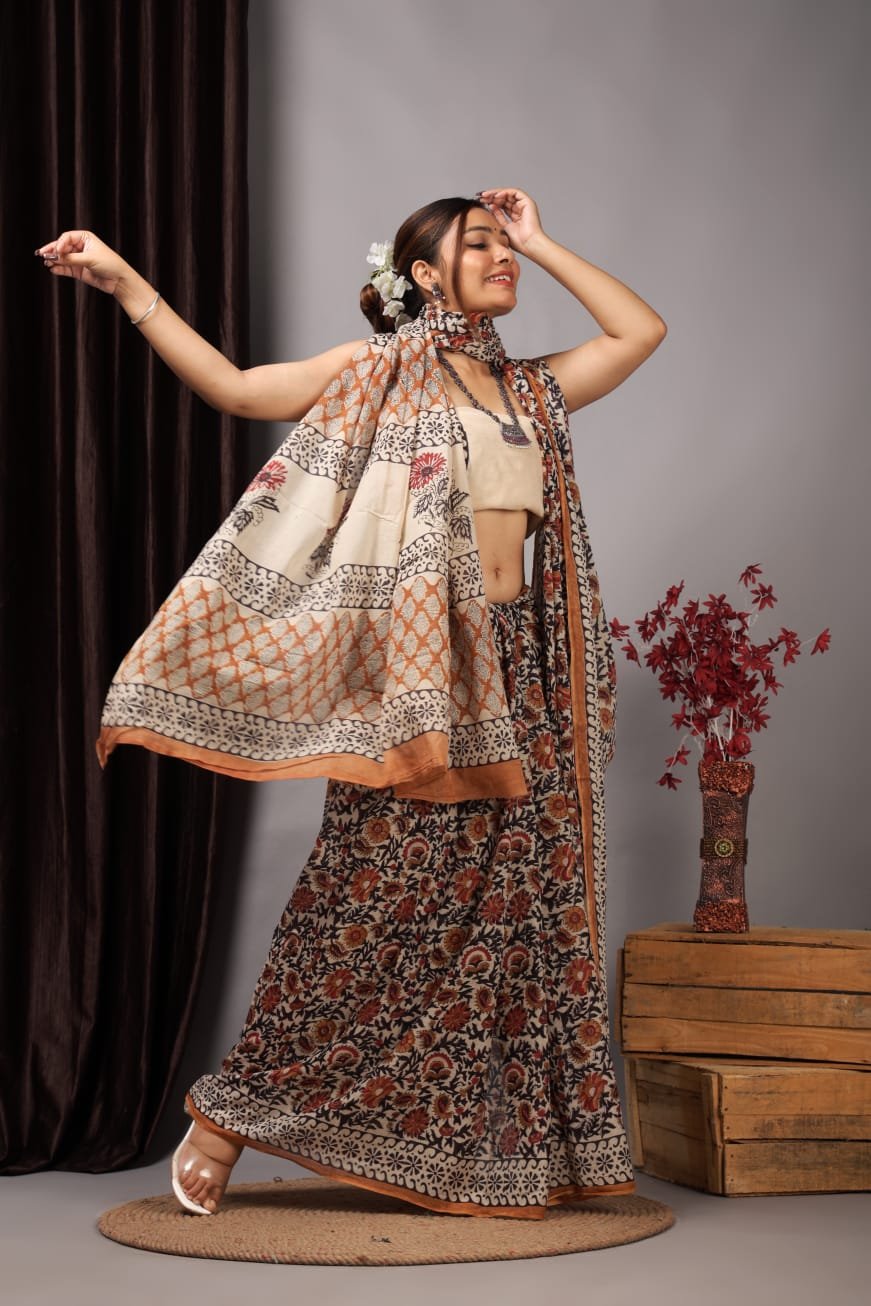 Home All Categories Clothing Saree Handblock Cotton Designer Mulmul Sarees – Buy Any 4 Sarees