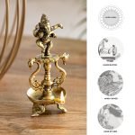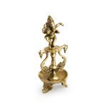 Three Handcarved Legs Brass Diya (1 Wick, 8.9 Inches, 180 ml, 2.14 Kg, Hand-Etched)