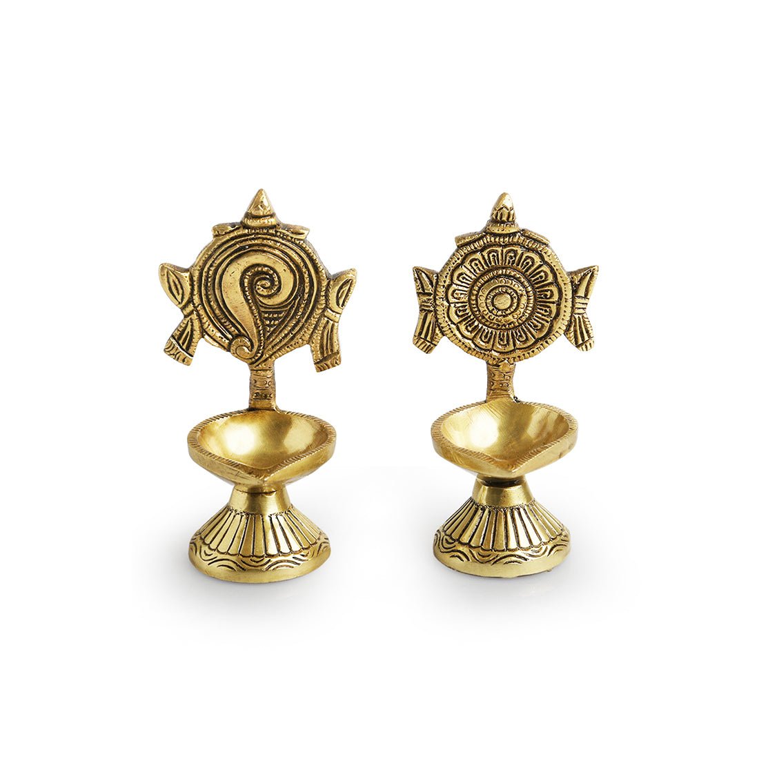Home All Categories Home Decor Diyas and Urli Handcarved Brass Diyas (Set of 2, 4.3 Inches, 7 ml)