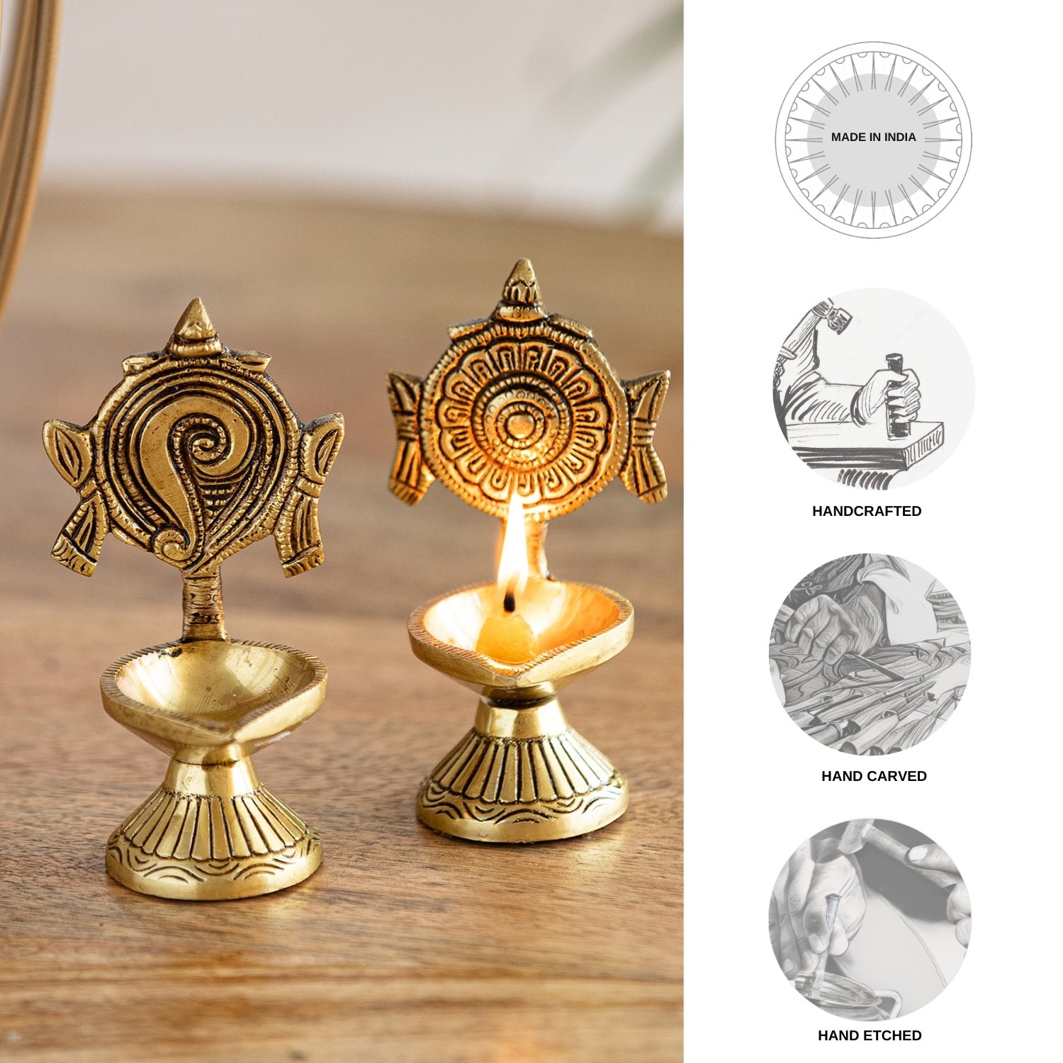 Handcarved Brass Diyas (Set of 2, 4.3 Inches, 7 ml)