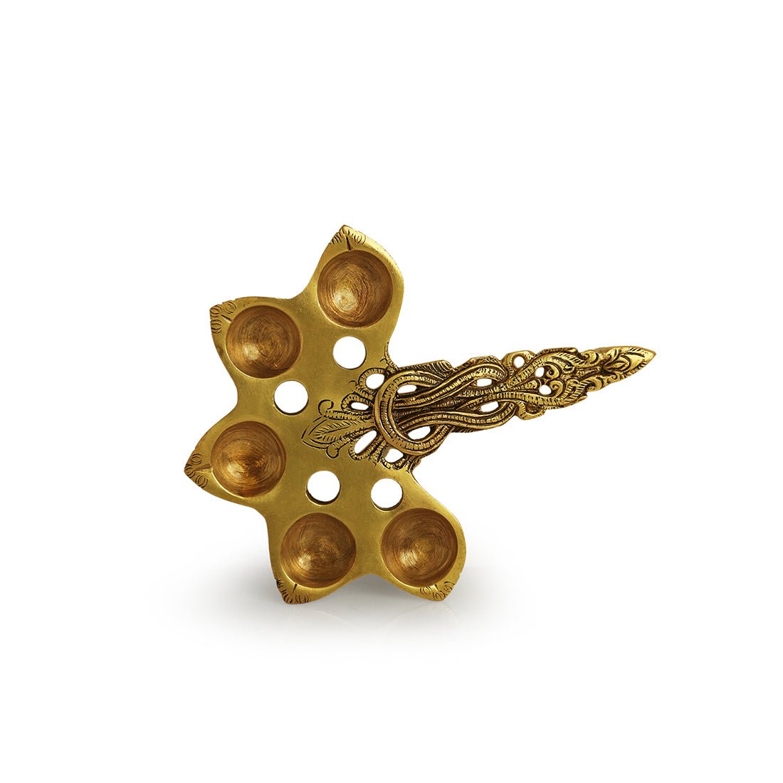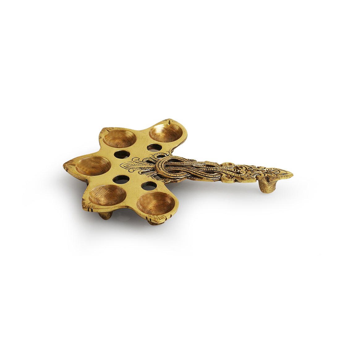 Handcarved Brass Pooja Spoon (5 Wicks, 7.4 Inch)