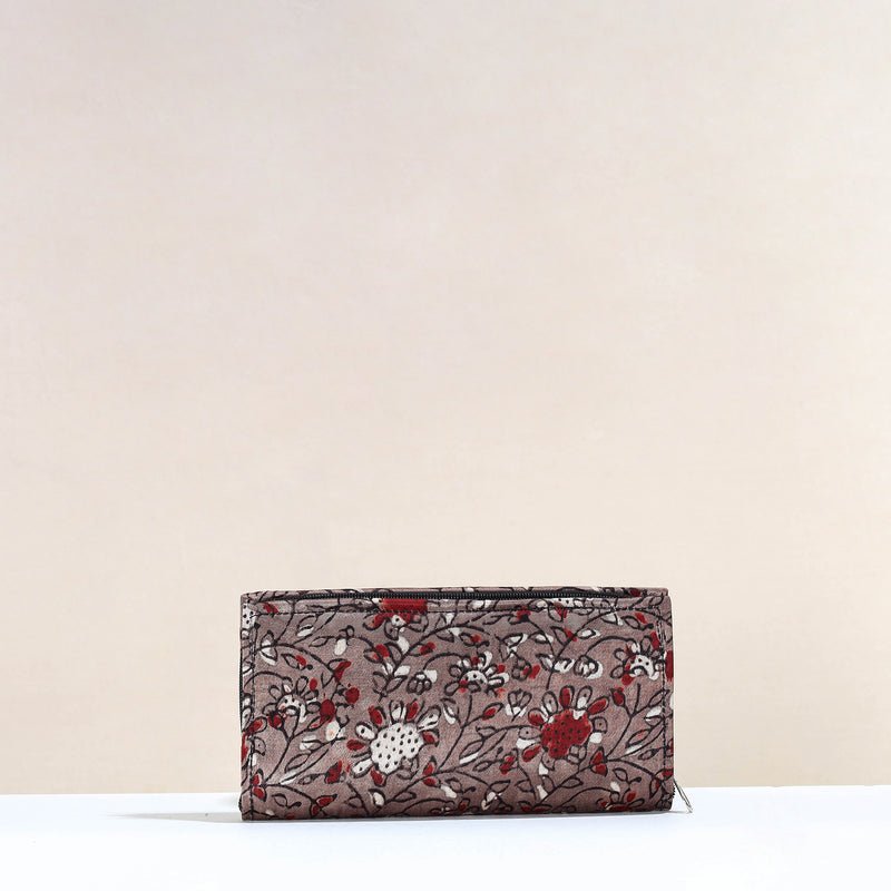 Handcrafted ajrakh mashru silk clutch / wallet. This clutch is crafted from ajrakh block printed mashru silk fabric by craftswomen in the Kutch region of Gujarat. It has two separate zipper pockets inside for cash and important documents and le space to keep most of your essentials.