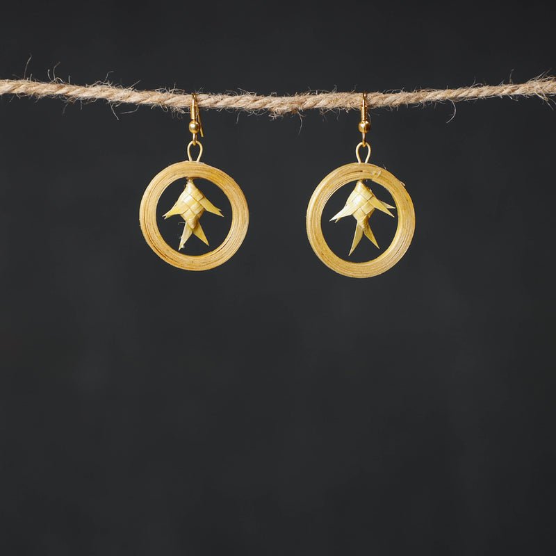 Handmade bamboo craft earrings, made from locally sourced variety of manvel bamboo crafted by tribal artisans of Raigad, Maharashtra.