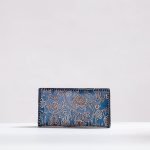 This wallet with embossed leather finish is handcrafted by the master artisans of Kolkata, West Bengal. It has four card holders, two simple, one zipper and a magnetic snap button pocket with cotton lining inside. The leather used is a cruelty free vegetable tanned leather. Embossing is done using a metal die, after which it is individually painted by hand using spirit colours. Each product is then constructed by hand. For customised options, a small batch production of 50 pieces is possible.