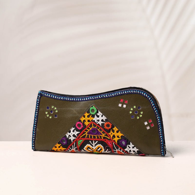 Handcrafted Kutch Embroidery Leather Clutch / Wallet