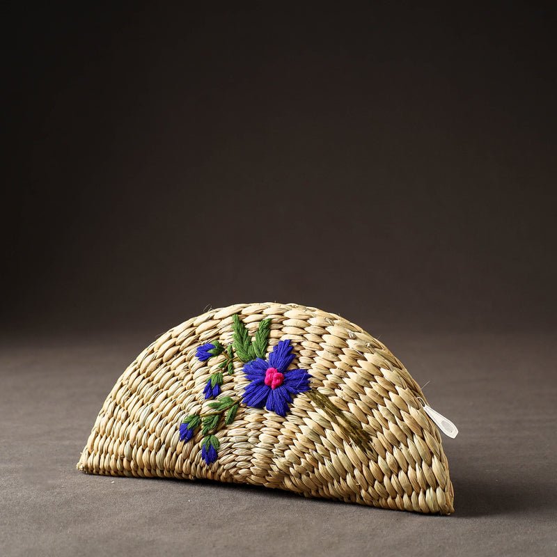 This exquisite handcrafted clutch from Manipur is made of natural water reed and adorned with intricate hand embroidery. The bag showcases the rich cultural heritage of Manipur, known for its traditional craftsmanship. Made from durable and eco-friendly water reed, the bag is perfect for everyday use. It offers le space for important documents, money and cards . The vibrant hand embroidery adds an artistic touch, depicting traditional patterns and nature-inspired designs. With secure zipper closure, this bag combines traditional charm with contemporary style, making it a versatile and fashionable accessory for any occasion.