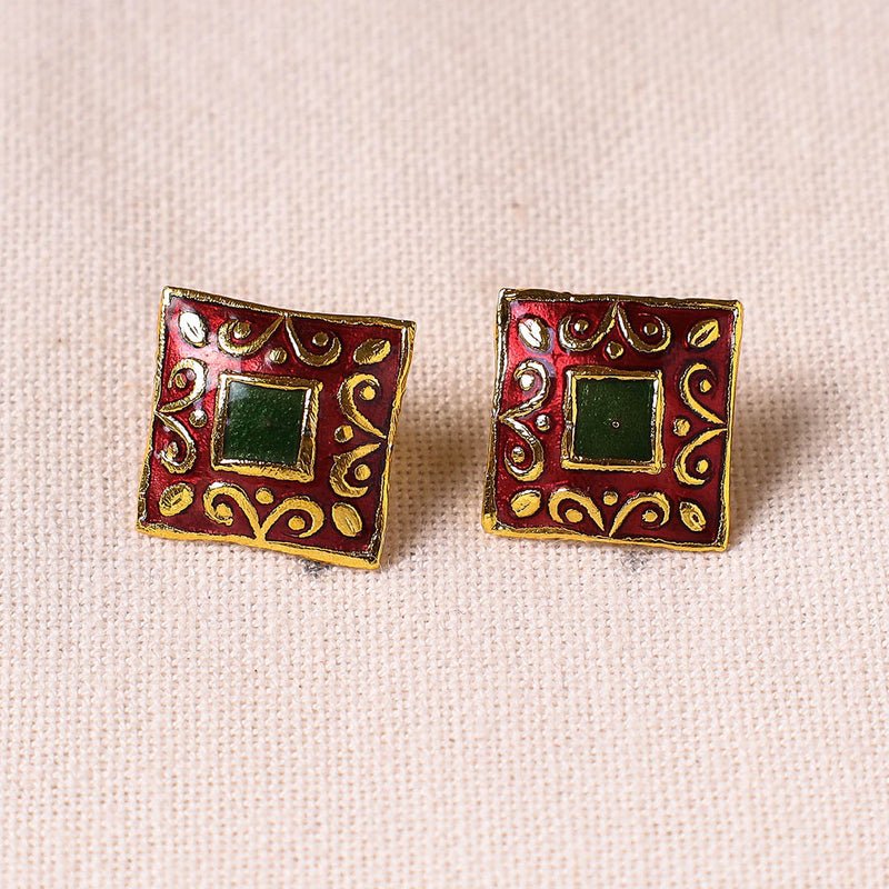 Home All Categories Jewelry Earrings Handcrafted Paka Meenakari Stud Earrings