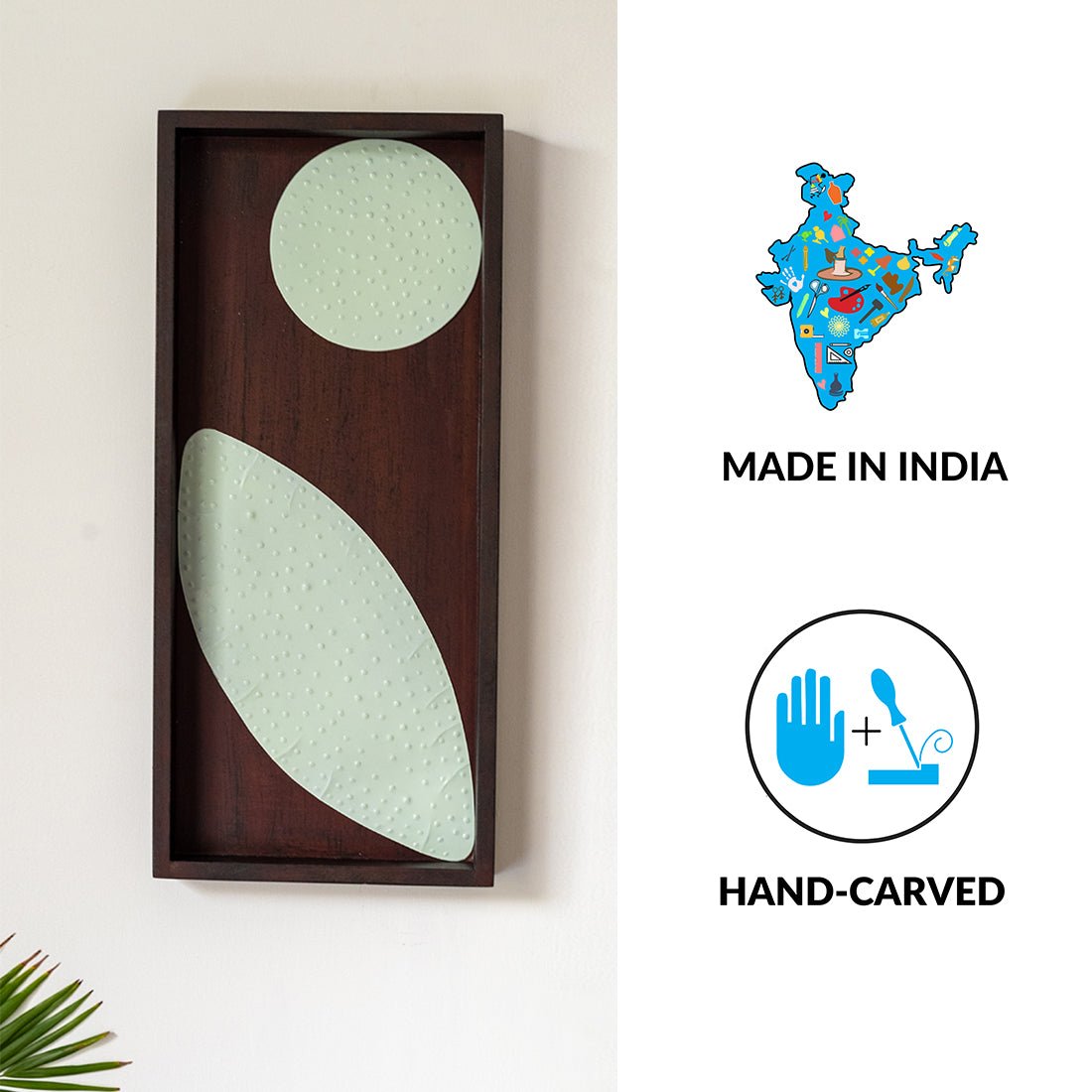 This Wall Hanging is made by a highly awarded artisan. It is made using Recycled wood and handcarved. The finish can be a natural finish orit can be hand-painted in the chosen colors. Various shapes, sizes and designs are possible for a small batch production of 100 pieces. Existing designs are available for a minimum quantity of 24 pieces.