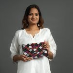 The Clutch is crafted from Mashru silk fabric, and embellished with Tribal (Ahir) embroidery – a signature embroidery technique of Tribals in Kutch region of Gujarat. The intricate hand-embroidery is mostly done by tribal women. ?It has eight simple pockets and one zipper pocket, having ample space to keep cash or essentials. It has a cotton fabric lining inside.