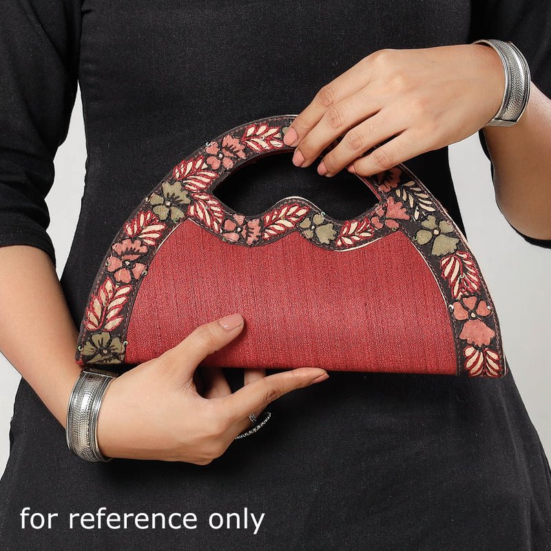 Home All Categories Fashion Accessory Sling Bags Handpainted Kalamkari Natural Dyed Ghicha Silk Hand Clutch Bag