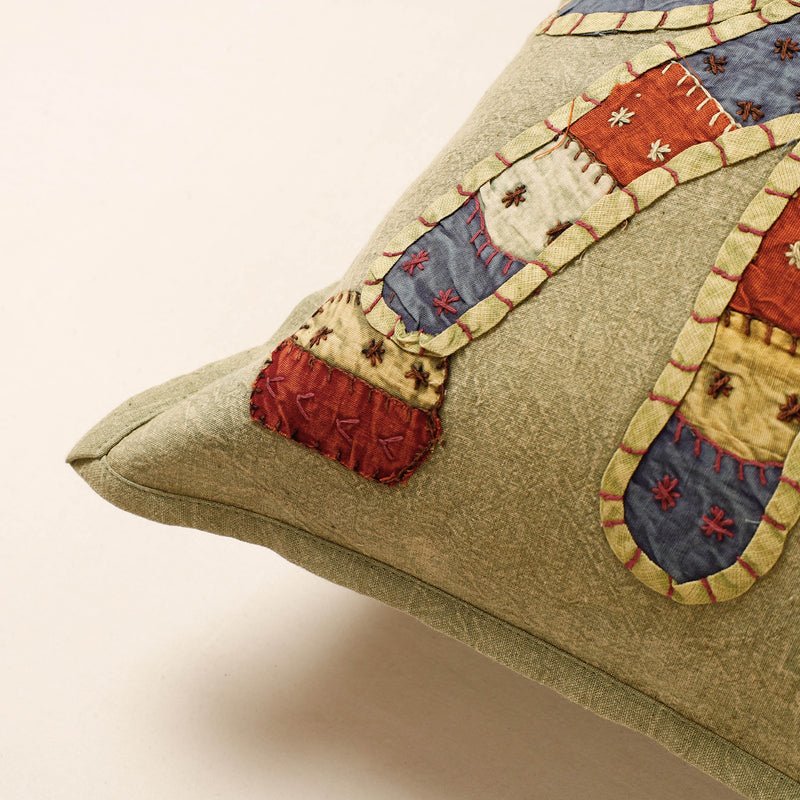 Jogi Embroidery Patchwork Cotton Cushion Cover (16 x 16 in)