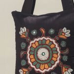 Fine quality kala raksha pakko hand embroidered cotton shoulder bag. Paako literally solid, is a tight square chain and double buttonhole stitch embroidery, often with black slanted satin stitch outlining. The motifs of paako, sketched in mud with needles, are primarily floral and generally arranged in symmetrical patterns.