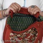 This Kala Raksha shoulder bag features exquisite rabari hand embroidery. Made by skilled artisans using traditional techniques, the bag is both durable and stylish, making it perfect for everyday use. The intricate embroidery showcases the rich cultural heritage of the Kala Raksha community, and the attention to detail is evident in every stitch. It has one simple and two zippered pockets inside, and one zipper pocket on the backside for keeping bills and coins.Rabari embroidery is unique to the nomadic Rabaris. Essential to Rabari embroidery is the use of mirrors in a variety of shapes. Rabaris outline patterns in chain stitch, then decorate them with a regular sequence of mirrors and accent stitches, in a regular sequence of colors. Rabaris also use decorative back stitching, called bakhiya.