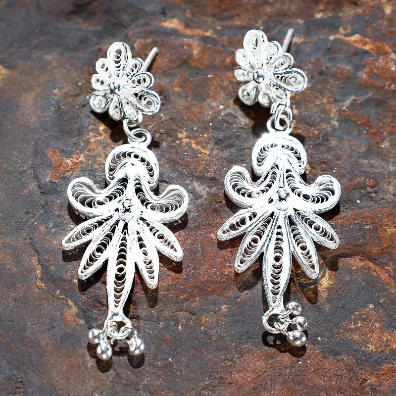 Hand-crafted filigree sterling silver earrings from Kalinga, Odisha. This product is made by artisans working traditionally with precious ornaments. (made of 92.5% sterling silver) Featuring an eye-catching design and excellent finish, these filigree silver earrings are a must-have in your accessory collection.