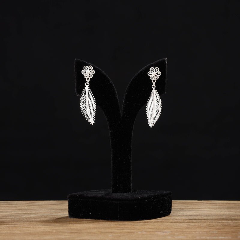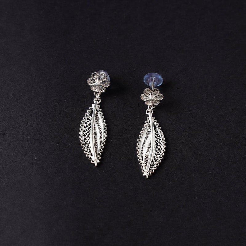 Hand-crafted filigree sterling silver earrings from Kalinga, Odisha. This product is made by artisans working traditionally with precious ornaments. (made of 92.5% sterling silver) Featuring an eye-catching design and excellent finish, these filigree silver earrings are a must-have in your accessory collection.