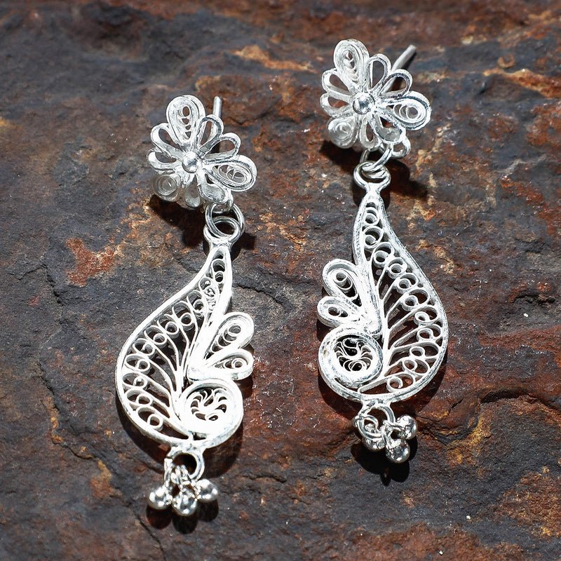 Hand-crafted filigree sterling silver earrings from Kalinga, Odisha. This product is made by artisans working traditionally with precious ornaments. (made of 92.5% sterling silver) Featuring an eye-catching design and excellent finish, these filigree silver earrings are a must-have in your accessory collection.