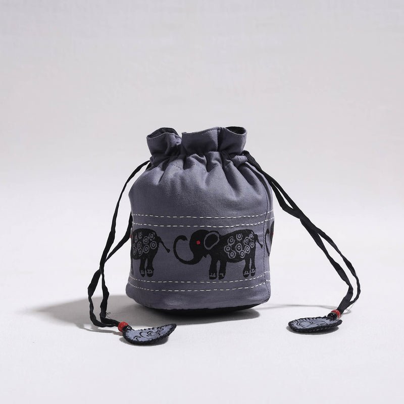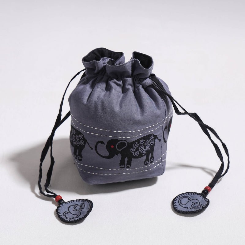Kantha Work Block Print Cotton Potli Bag