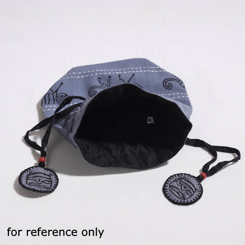 Home All Categories Bag and Backpacks Potli Bags Kantha Work Block Print Cotton Potli Bag
