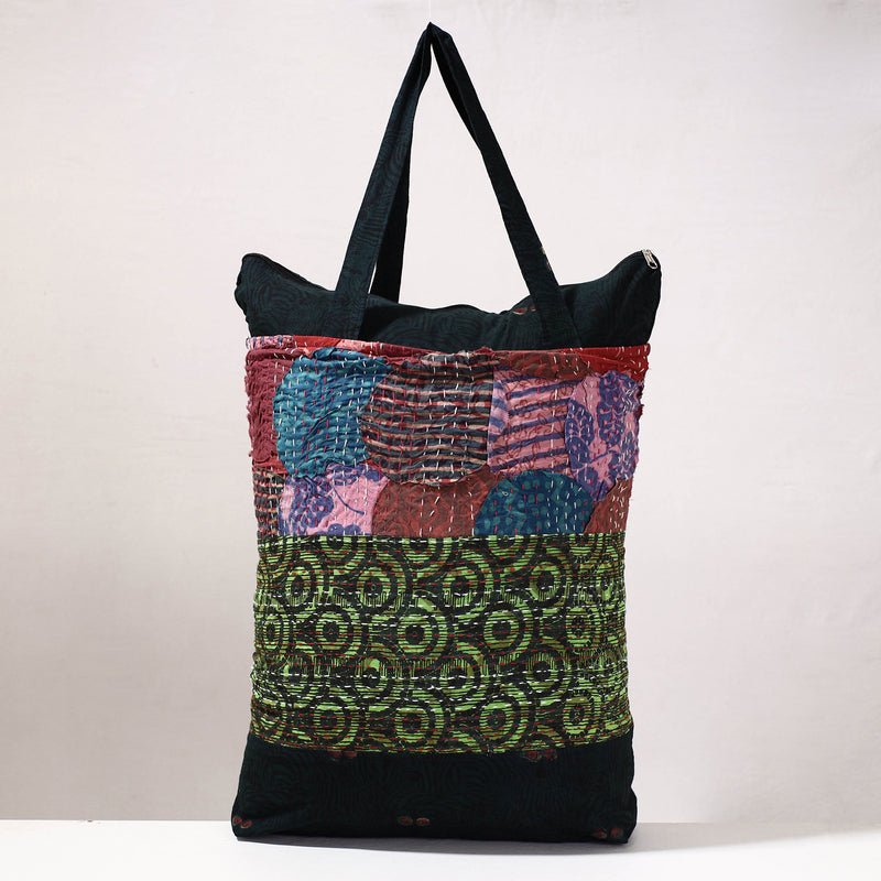 Home All Categories Fashion Accessory Shoulder Bags Kantha Work Block Print Cotton Shopping Bag