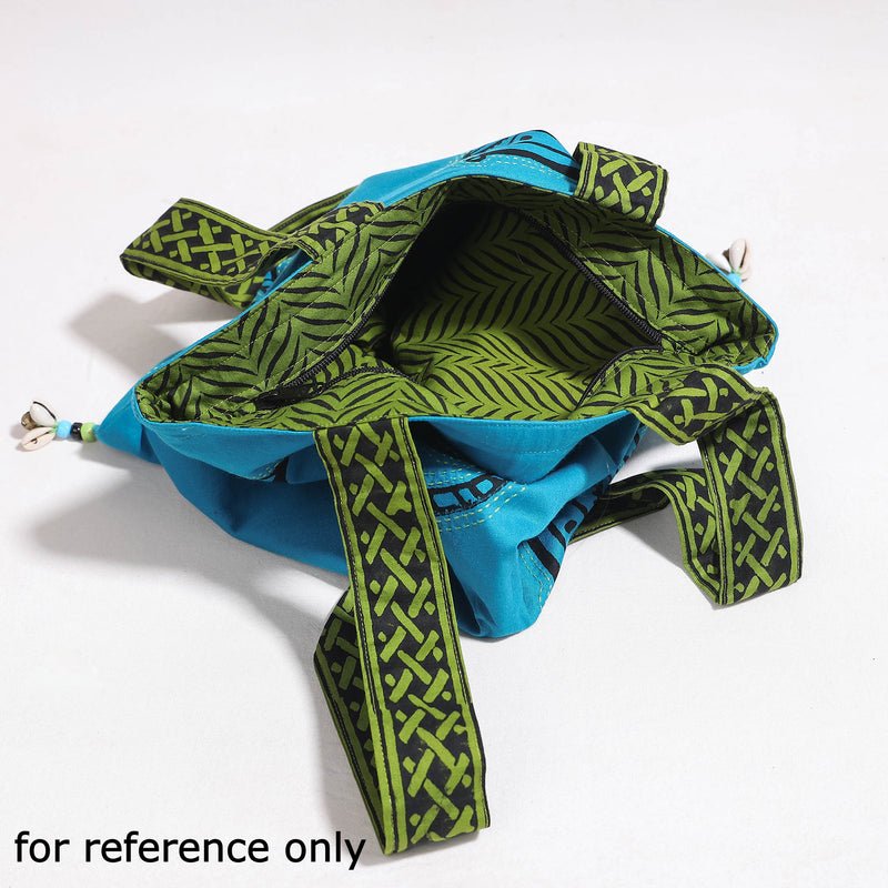 Handcrafted shoulder bag made from hand block printed cotton fabric from Rajasthan. It has five simple pockets outside. Ample space to keep most of your essentials.