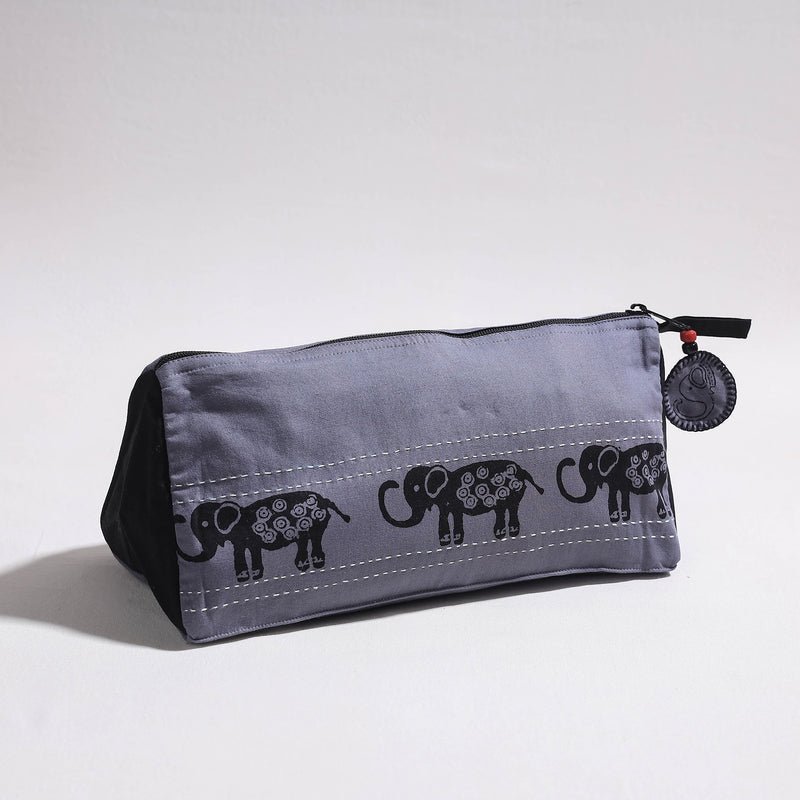 Kantha Work Block Print Cotton Toiletry Pouch